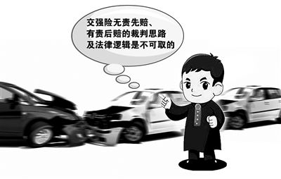2.按照原审法院判决确认的交强险无责先赔、有责后赔的裁判思路,将导致无责全赔、全责反而不用赔的荒谬结论及不公正现象。