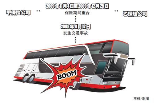 近日看到某区人民法院一个道路客运承运人责任险合同纠纷的生效判决。运输公司为一辆大型卧铺客车在甲、乙两保险公司分别投保道路客运承运人责任险,甲公司承保每人责任限额为2万元,乙公司承保每人责任限额为30万元。甲公司的保险期间和乙公司的保险期间在2009年11月4日至2009年12月25日之间重合。2009年11月12日,李某驾驶上述车辆发生侧翻,造成车上乘客受伤。事故造成的伤者中,第1号伤者费用为20264.25元,第2号伤者费用为253211.55元,第18号伤者的医疗费用超过32万元,另外3到17号伤者的医疗费均在2万元以内。原告运输公司称事故发生后原告积极向伤者履行赔偿责任后向两被告进行理赔,因两被告拒赔形成诉讼。一审法院认为,原告在二被告处为车辆投保道路客运承运人责任险,原告作为被保险人享有保险金请求权。该车发生事故的时间均在两保险的保险期间内,构成重复保险。依据保险法的规定,二被告在保险金额总和32万元超过保险价值的情况下,各按照保险金额与保险金额总和的比例承担赔偿保险金的责任。因二被告保险公司保险金额为甲公司每人每座2万元,乙公司每人每座30万元,故二被告承担责任的比例为1∶15,即甲公司按照1/16承担赔偿责任,乙公司按照15/16承担赔偿责任。据此法院判决,第1号到17号伤者费用,法院均按照1/16和15/16在甲公司和乙公司之间进行了分配,第18号伤者的费用,由于费用超过甲公司和乙公司责任限额之和,法院判决甲公司赔偿2万元,乙公司赔偿30万元。一审判决后,当事人各方均未上诉,现判决已经生效。