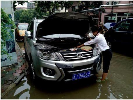 安欣雯到天津永濠奥达奥迪4s店进行“水淹车”查勘定损