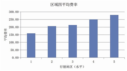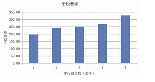 图6 区域四内不同年行驶里程数(水平)平均费率分析