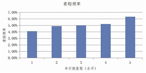 本文基于车辆实际统计数据,定量分析年行驶里程与风险的关系。在研究车辆行驶里程与风险的关系时,采用索赔频率、索赔强度、平均费率来表示风险的大小。