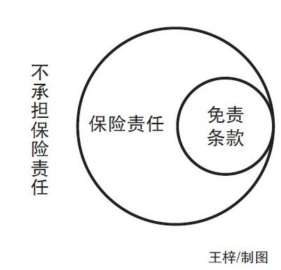 如上所述,不承担保险责任、保险责任以及免责条款三者关系如下图所示: