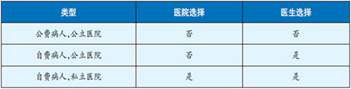 表3:澳大利亚公费病人和自费病人的医院与医生选择类型