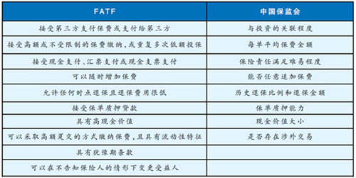 反洗钱金融行动特别工作组 (Financial Action Task Force on Money Laundering,简称FATF)和中国保监会均认为,保险业务/产品的特性不同,洗钱风险也存在差异,为此,二者均制定保险业务/产品洗钱风险评估标准,为评估不同保险业务/产品洗钱风险提供指导(见表1)。