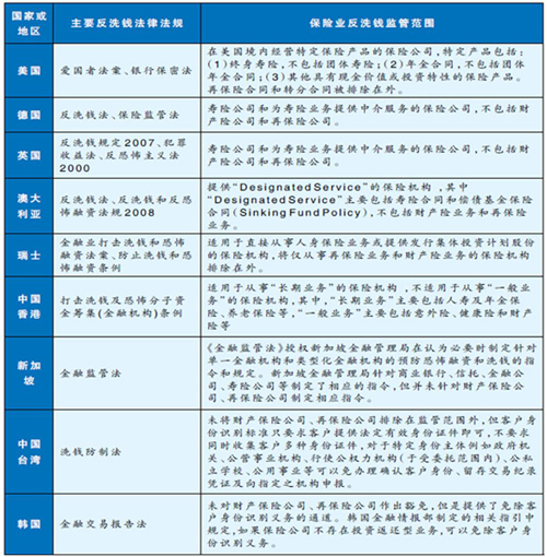 表3 境外主要发达国家或地区保险业反洗钱立法情况