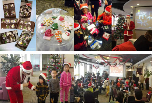 活动开始,首先由民生保险特邀Alma甜品、花艺私人订制工作室瑶瑶老师带领小朋友们进行圣诞小饼干的制作。随后,由民生保险的工作人员装扮的“圣诞老人”空降现场,带领小朋友们完成了圣诞知识小问答,许下2015年圣诞愿望,开展了趣味小游戏。最后,由家长与小朋友们一同将许愿卡挂在圣诞树上并与圣诞老人进行了合影留念。