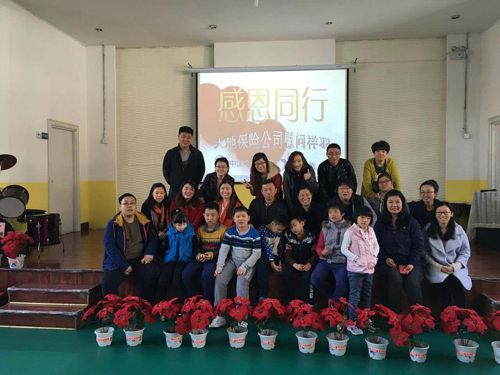 在2016年4月2日世界自闭症日前夕,中国大地保险天津市滨海支公司团支部组织员工开展了“走进祥羽,向星星的孩子献爱心”活动。在公司领导和全体员工的大力支持下,共收到捐款捐物折合人民币3750元。以孙志昭总经理为首的慰问团一行22人于3月25日对天津市滨海新区祥羽孤独症康复中心进行了现场捐助并与孩子们进行了亲切互动,受到了祥羽的表扬和感谢。