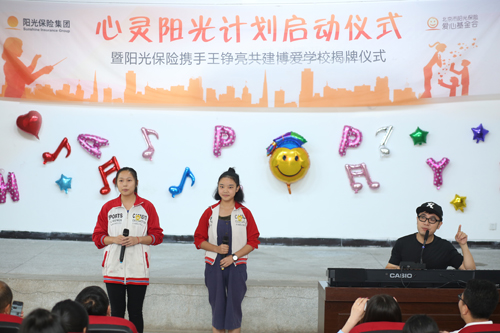 9月15日,阳光保险“心灵阳光计划启动仪式暨阳光保险携手王铮亮共建博爱学校揭牌仪式”在四川省雅安市雨城区晏场镇中心校举行,这也是阳光保险在全国援建的第41所博爱学校。同时,旨在关爱农村留守儿童心理健康成长的“心灵阳光计划”正式启动,并率先在雅安雨城区10所学校落地。著名川籍音乐人王铮亮担任“心灵阳光计划”爱心大使出席活动并给这里的孩子们上了一堂音乐公开课。