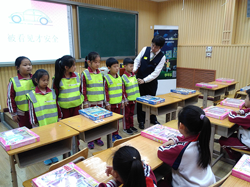 11月23日,国寿财险在静海区第四小学开展“感恩有你,国寿相伴,星光守护进校园”暨“星光100”星光守护进百所校园交通安全公益活动。天津分公司讲师利用“交通安全魔法箱”内的教具向学生授课,讲授了交通安全的重要意义,并利用“星光守护”反光贴向学生们宣传“被看见才安全”的交通安全理念。 活动现场气氛活跃,学生与我司讲师积极互动,在寓教于乐的氛围中学习了交通安全知识。(国寿财险天津分公司)