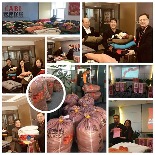 一件捐赠,十分爱心,百份温暖!安邦财险天津分公司全体员工在这个寒冬里奉献自己的爱心,这份温暖将像雪域高原的阳光一样洒满每个人的心田!