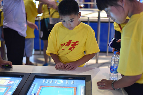 2018年7月18日,周六上午,天津科技馆人流如织,志愿者刘阿姨拉着小朋友芳芳(化名)的手,耐心地讲解着动力平衡的知识。