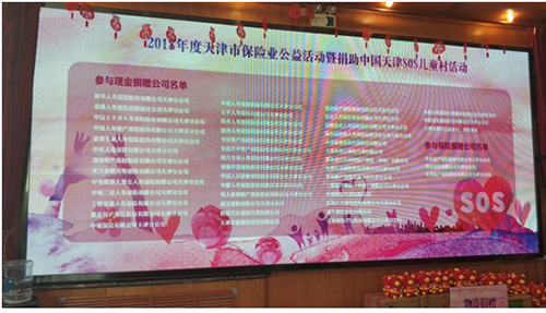 2018年12月18日下午,渤海财险天津分公司常务副总经理王玥参加了由天津市保险行业协会、天津市保险学会主办的《2018年度天津市保险公益活动暨捐助中国天津SOS儿童村活动》,此次活动有天津社会组织管理局副局长张雪松、天津市民政局社会福利事业管理处副处长马福明、办公室主任边昱、中国天津SOS儿童村村长张民、协会学会常务副会长兼秘书长张志怀、副秘书长薛爽及保险公司爱心人士共计近百人参加。
