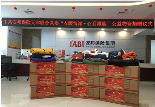 为积极贯彻党中央、北京朝阳区党委、安邦集团党委关于学习贯彻习近平总书记关于扶贫工作重要部署,积极落实中央脱贫攻坚方针政策,把脱贫攻坚与民族团结、共同繁荣紧密结合,理论与实践相结合。在了解到我司西藏分公司驻村工作队响应自治区党委政府号召,忍受高原缺氧、克服地理偏僻和生活不便,与上述两村藏族同胞同吃、同住、同劳动,为改善他们的生活条件而无私奉献,用实际行动诠释“汉藏团结一家亲”的感人事迹后,三年来,天津分公司每年都会主动联系驻村工作队伙伴了解藏胞们的实际需求,并组织安邦财险天津分公司、安邦人寿天津分公司全员积极参与为藏区同胞积极奉献爱心。