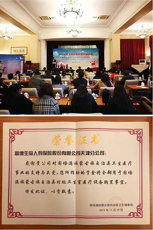 12月20日,天津保险业举办“2019年度天津市保险业公益活动暨参与天津市民政局脱贫攻坚活动”捐赠仪式,富德生命人寿天津分公司爱心代表有幸参加此次捐赠仪式,并对脱贫攻坚活动有了更深刻的体会和认识。公司将会持续致力于公益事业,用爱心践行责任,用爱心回馈社会,用爱点亮生命,积极履行企业社会责任。