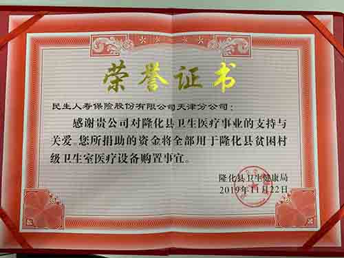 为树立我市保险业关心公益事业、勇担社会责任的良好形象,天津市保险行业协会组织本市各家保险公司参与天津市民政局2019年度脱贫攻坚活动暨天津市保险业公益活动,其中民生保险天津分公司积极参与其中,为贫困地区献出了自己的一份爱心。 民生保险天津分公司在接到公益活动通知后,积极组织员工进行捐款,在全员的共同努力下,共捐出款项4150元,为改善承德市贫困地区的卫生医疗设备献出自己的一份公益之心。未来,天津分公司会继续积极践行企业社会责任,贡献一份力量!