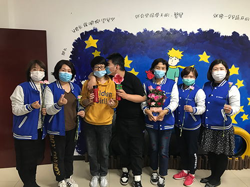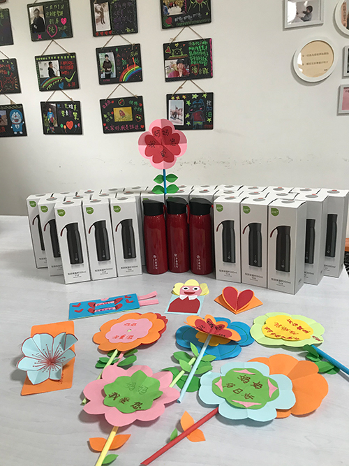 5月8日,世界微笑日,华泰人寿天津分公司的志愿者及客户来到金蜜蜂志愿者服务基地,在母亲节来临之际,前来慰问30名星星的妈妈们,希望他们能够绽放灿烂的微笑。在机构老师的带领下,金蜜蜂志愿者们和孩子们一起制作手工花束,小小的花束,却藏着孩子们无法表达出的爱意。公司特为星星的妈妈们准备了节日礼物,暖暖的保温杯,希望可以陪伴她们度过人生的温情时光。