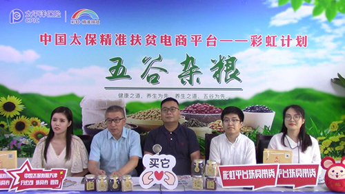 8月13日,中国太保寿险天津分公司利用中国太保精准扶贫电商平台--彩虹计划,为内蒙古察哈尔右翼后旗地区贫困户直播带货--旱地杂粮。