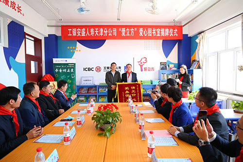 在当天的揭牌仪式上,工银安盛人寿相关负责人表示,第二十座“爱立方”爱心图书室落地天津宁河东棘坨镇,是工银安盛人寿积极融入母行中国工商银行的扶贫事业、履行企业责任、助力国家扶贫攻坚大计的重要举措。希望这座图书室作为一个载体,让孩子们爱上阅读,享受阅读,并以此激发璀璨的梦想。未来,公司还将定期回访,通过各种形式的志愿活动,与孩子保持持续的联系,展现“工银安盛,与您同行”的品牌情怀。小芦庄小学校长代表全校师生感谢工银安盛人寿的捐赠,表示一定会好好利用这次帮扶,将“读书、爱书”的理念真正带进全校一百多名孩子的心里。
