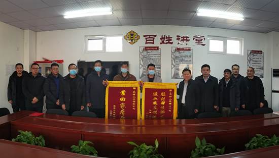 霍各庄镇党委书记尹波对于敬东总经理一行的到来表示欢迎,并代表镇政府向人保财险赠送锦旗,感谢人保财险帮扶组驻村三年来为张举人庄村所做的贡献,让张举人庄村的面貌焕然一新,帮扶工作取得的显著成效充分展现了人保财险作为金融央企的企业社会责任担当。