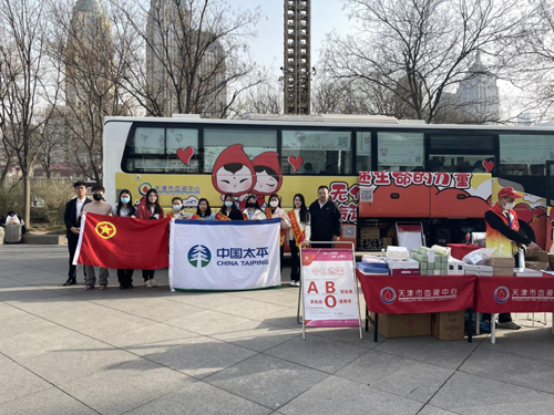 2023年3月14日下午,在天津市血液研究中心指导下,太平财险天津分公司团委组织团员代表前往天津站献血车前开展志愿服务活动。