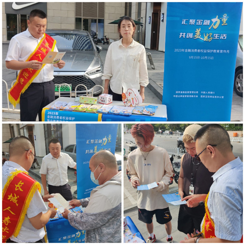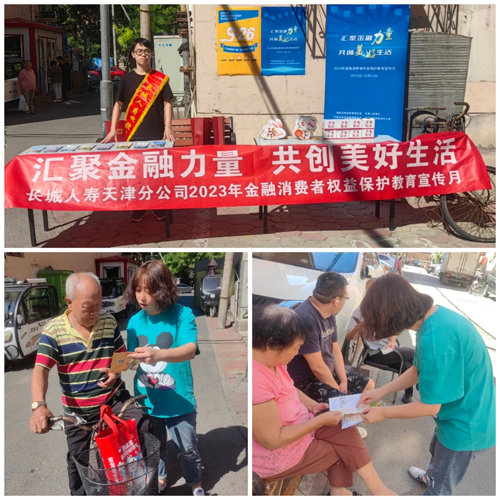 长城人寿天津分公司来到天津市南开区大悦城商圈,悬挂条幅、宣传海报、摆放充足的宣传彩页,向行人发放并讲解金融消费者八项权利、个人信息保护、老年人防诈骗、青年消费者风险提示等,普及与消费者密切相关的金融知识,提升消费者金融风险识别和自我保护能力。