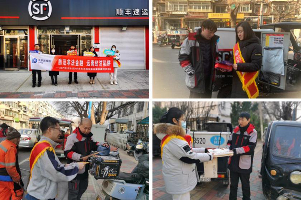 为加大防范非法金融活动宣传教育工作力度,增强人民群众风险防范意识和能力,太保产险天津分公司针对重点人群,关注“新市民”融入新环境,于1月20日走进顺丰快递网点,开展了一场别开生面的防范非法金融宣传教育
