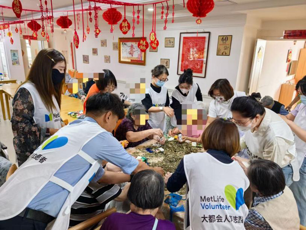 端午佳节来临之际,为弘扬中华传统文化,传递企业社会责任,5月23日,大都会人寿天津分公司9名志愿者走进鸿泰乐尔之家养老院,开展了“端午香包寄安康”主题活动,与老人们共迎佳节,同时为老人们送上了金融知识